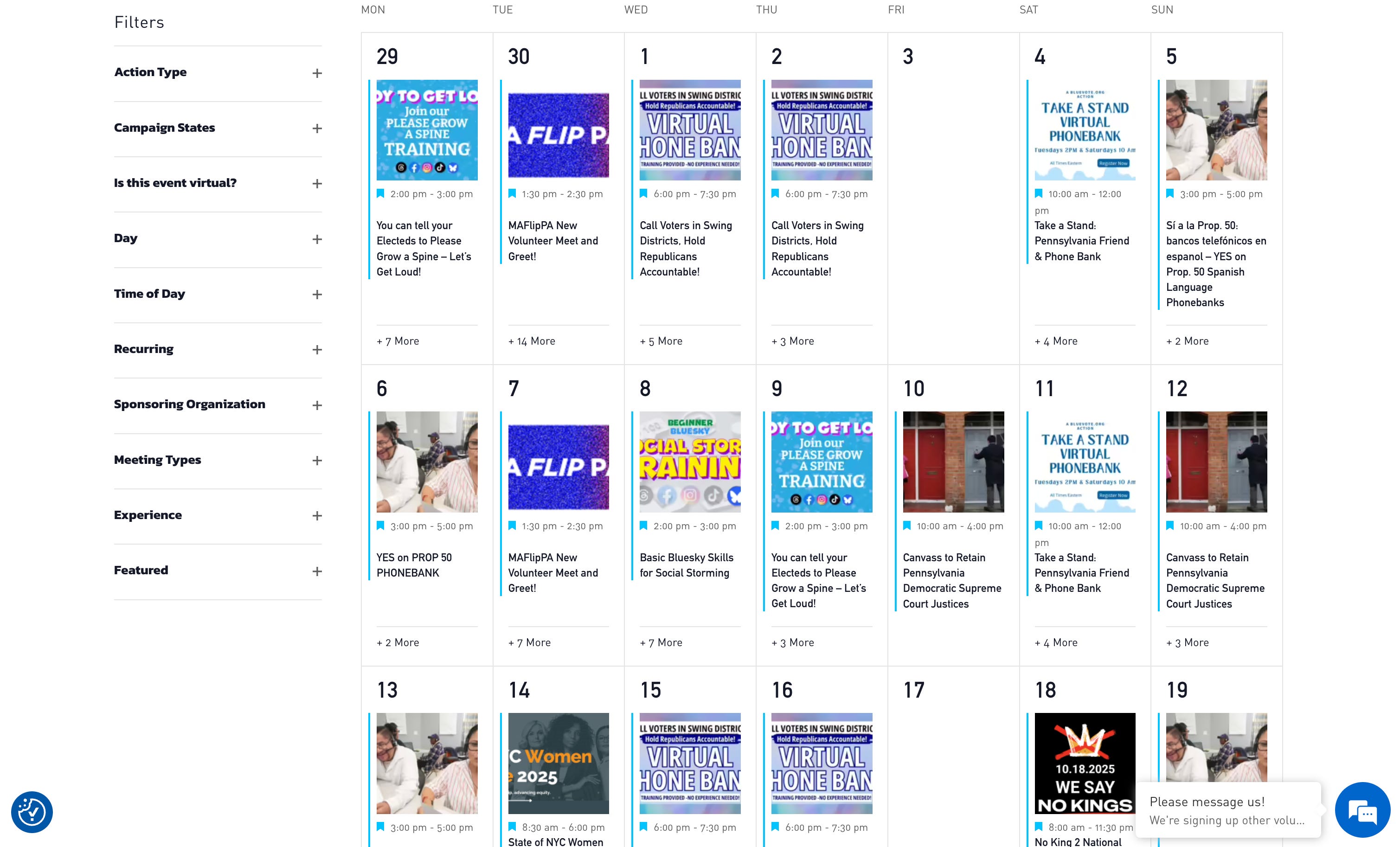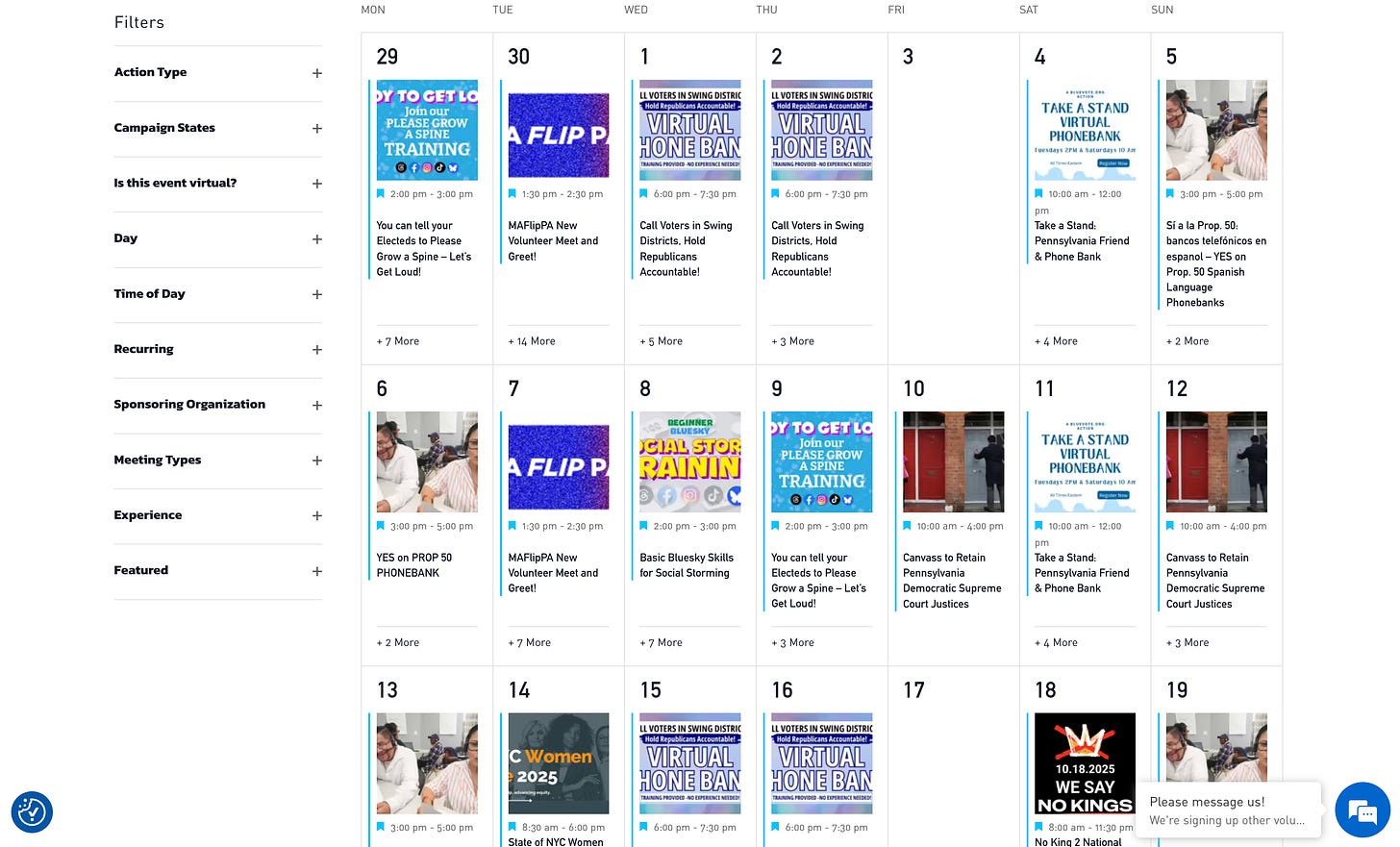 Volunteer Blue (VB) is a volunteer-led organization with the mission of making it easy for people to volunteer in ways that will help us win elections. And VB works hard at making volunteering easy. Its calendar contains something volunteers can do each day of each month.